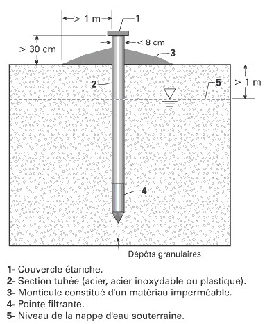aménagé en enfonçant manuellement ou mécaniquement le tubage. En plus des obligations générales mentionnées précédemment, diverses responsabilités particulières