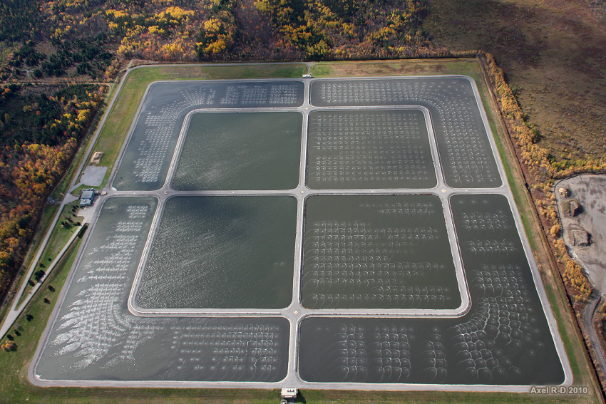 de surface. Les étangs sont subdivisés en trois couches; une zone aérée, facultative et anaérobie au fond des bassins.