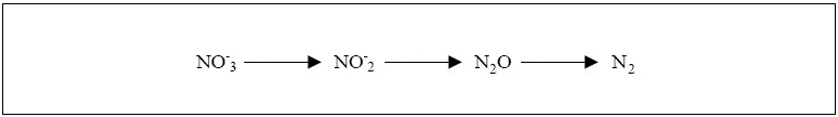 La dénitrification est un processus de réduction par étapes des formes oxydés de l’azote (NO3-) et (NO2-) en diazote (N2). La dénitrification est assurée par des