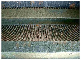Ce principe de nettoyage permet aux barres d'être libres au sommet et par conséquent prévenir le coincement des solides entre elles. Ce principe permet un taux de